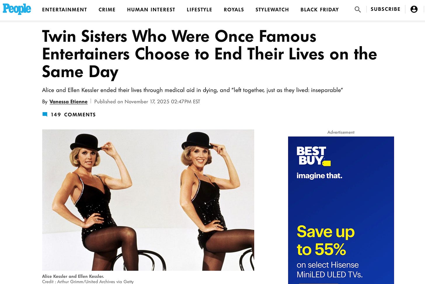 Let us now turn our attention to a set of twins who recently committed assisted suicide together: